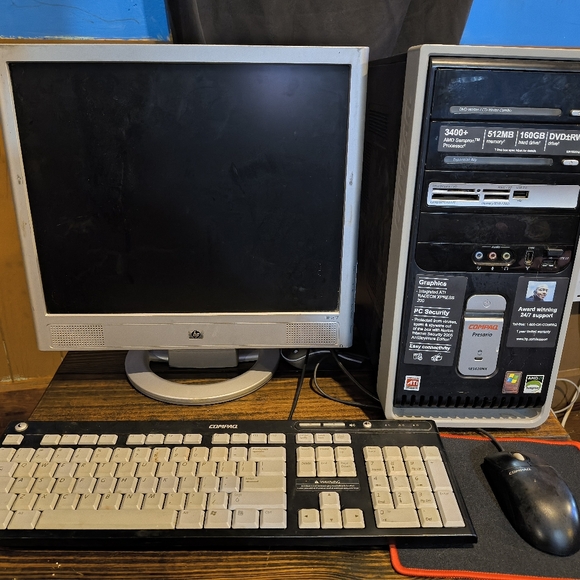 Hp Monitor, Compaq Modem, Mouse, and Keyboard.... Comes with extra LED wireless mouse