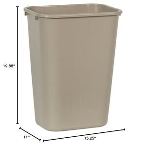 Deskside Trash Can 10.25 Gallon Beige Plastic Wastebasket Fits Under Desk