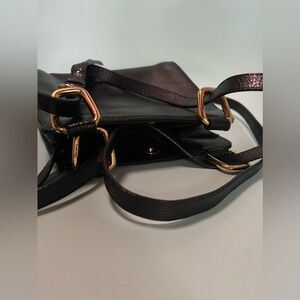 Made in Italy ~ Pebbled Black Leather with Goldtone Signature Hardware ~ Magnetic Clasp ~ Zipper and Pockets Interior ~ Measures 8 by 7 by 2 1/2