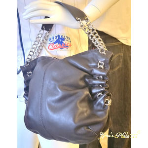 Desmo Made In Italy Calfskin Genuine Dark Brown Cinched Leather Small Handbag