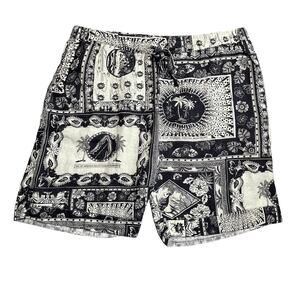 Keywords: Desmond Dempsey Shorts Mens XL Black Print Linen Luxury Pyjama Resort Casual