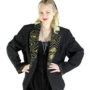 Desperately Seeking 80s Pyramid Style Black Glitter Susan Jacket - Size 20