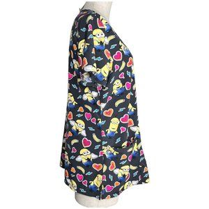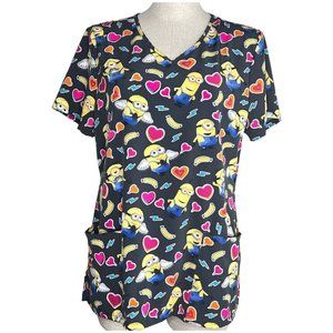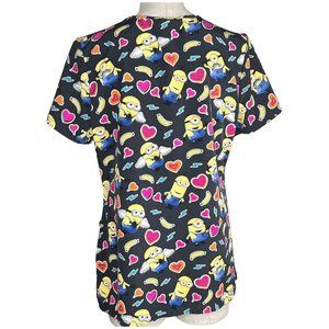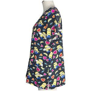 Despicable Me Minion Scrub Top Women Size M Hearts V Neck Uniform Kids Character