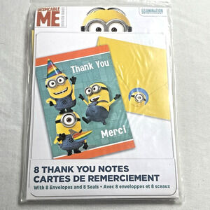 Despicable Me Minions Kid Birthday Party 24 Invitations and Thank You Notes. (3) Packs of 8 Invitations and (3) Packs of 8 Thank You Notes. Each pack has 8 cards, 8 envelopes and 8 sticker seals. Review photos for details. NEW IN SEALED PACKAGES.