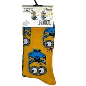 Despicable Me Minions Novelty Crew Socks Yellow Blue Unisex Mens 6-12 Shoe Size