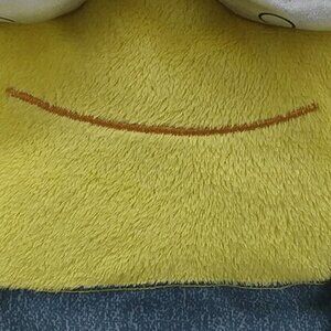 The pillow is in great condition. No rips, holes, stains, tears, etc. He will make a great cuddle buddy. 18 inches long. The minion body is soft, but the buttons on his overalls are hard and his goggles are more firm than the rest of his body.