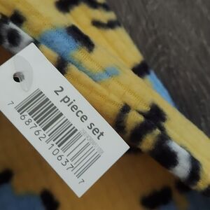 Cozy yellow pajama set featuring playful Minion designs in blue and black. Perfect for a fun night in.