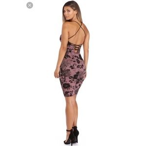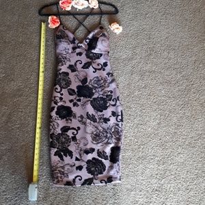 Sexy pink skin tight Windsor dress with black floral suade pattern. The straps are a bit too long but that can easily be adjusted to your liking. Approximately 33 inches long. Feel free to ask any question.