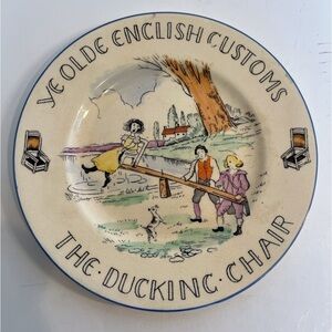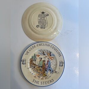 Vintage Scenes of Olde English Customs as recorded from the 17th Century. Printed on 6in Diameter Plates by Burgess and Leigh, Staffordshire England. These plates are from the 1930s/ 1940s. Some light crazing is present on all plates. The Maypole Dance Plate has 2 small, light cracks which do not go through the entire plate. Please zoom in on photos to choose the plates that you would like to purchase and inform me. All plates are $10 each. Very colorful and unique!