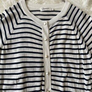 Dessin Border Knit Cardigan Rayon Blend White/ Navy