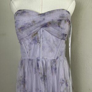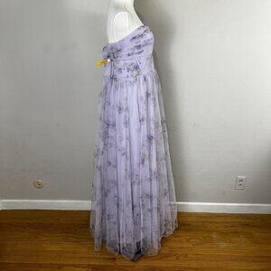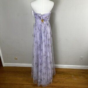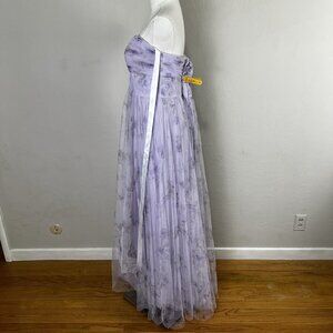 Dessy 3129FP Lilac Haze Garden Floral Print Strapless Tulle Gown Size 14 NEW