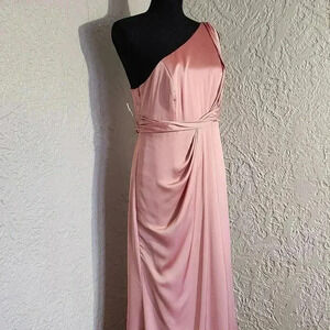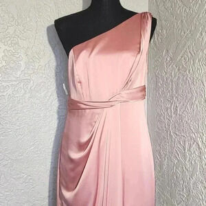 Dessy Ccollection O-shoulder satin Gown in 🔥 pink 💗 nwot