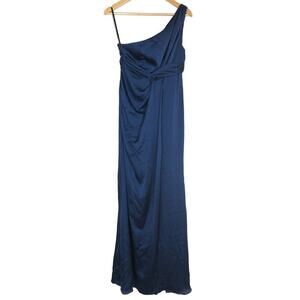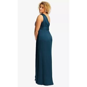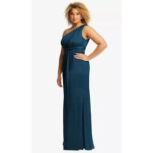 Dessy Collection 3111 Dress One Shoulder Twist Empire Waist Trumpet Gown Atlantic Blue NWT 8
