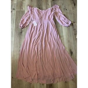 Dessy Collection Convertible Neck Long Sleeve Chiffon Gown Desert Rose Size 18 R.