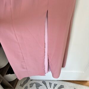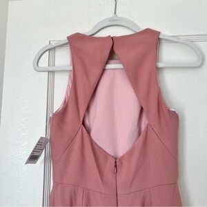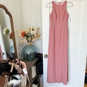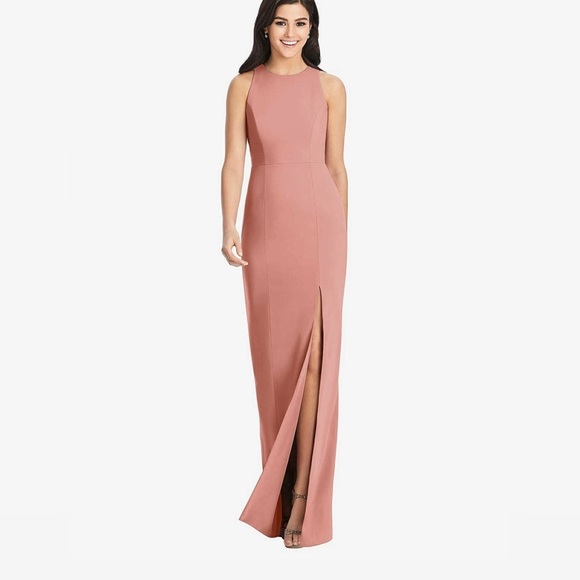 Dessy Collection DIAMOND CUTOUT BACK TRUMPET GOWN WITH FRONT SLIT IN DESERT ROSE