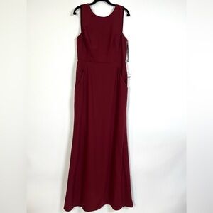 Charming full length sleeveless dress with soft crepe fabric lends true presence at any occasion. A flowing, draped low back allows for a flirty sophistication.