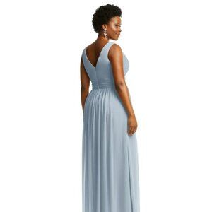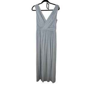 Dessy Collection Draped Chiffon Womens Maxi Dress With Front Slit Color Mist Size 6R (0020)