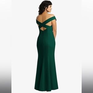 Dessy Collection- OFF-THE-SHOULDER CRISS CROSS BACK TRUMPET GOWN