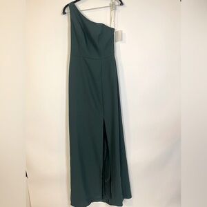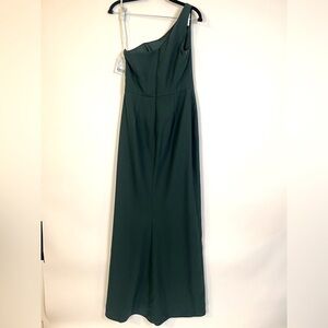 Dessy Collection- ONE-SHOULDER CREPE TRUMPET GOWN WITH FRONT SLIT