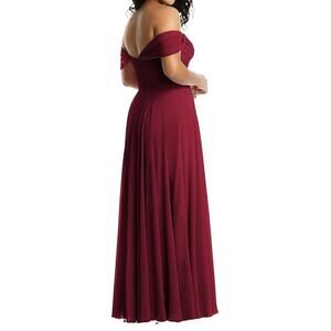 The Dessy Collection Off Shoulder Draped Chiffon Maxi Dress Burgundy Women's 4 $284