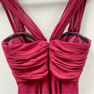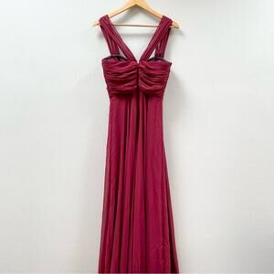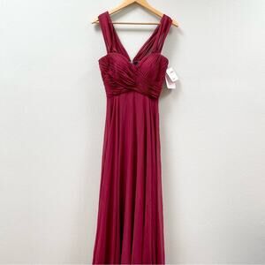 Dessy Collection Off Shoulder Draped Chiffon Maxi Dress Burgundy Women's 4 $284