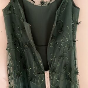 Dessy Collection Off-Shoulder A-Line 3D Floral Embroidered Evergreen Maxi Dress