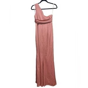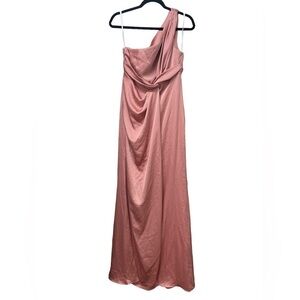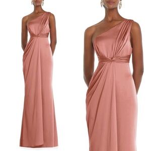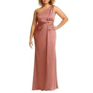 Dessy Collection One-Shoulder Satin Gown Desert Rose