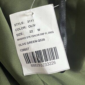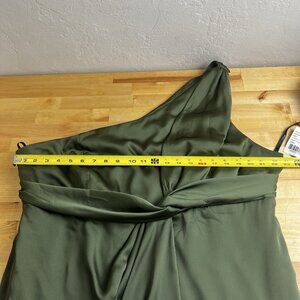 Dessy Collection Size 22 W Whisper Satin One Shoulder Drape Gown Olive Green NWT