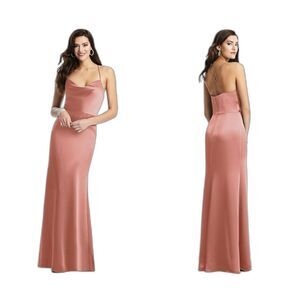 Dessy Collection Sz 0 Cowl-Neck Slip Dress with Criss-Cross Back Desert Rose