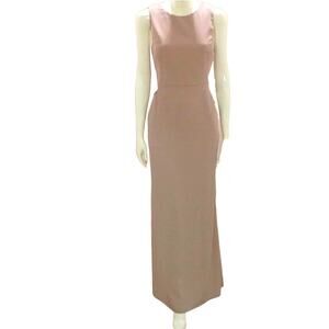 Dessy Collection Vivian Diamond Maxi Dress Women's Size 14 Taupe Crepe Open Back Sleeveless Dress With Pockets