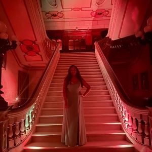 This is style 3013. Ordered in a 24 long but was large and altered. The fit is more between a 20-22. For reference I am 6’1 and I typically wear a 16-18 in non bridesmaids dresses.
