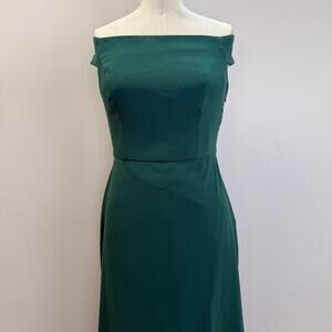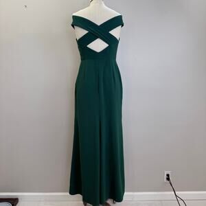 Dessy Collection Women's Green Crepe Off the Shoulder Criss Cross Back