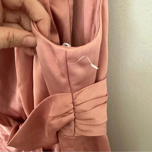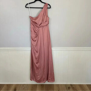 Dessy Collection Women’s One-Shoulder Blush Gathered Bodice Satin Gown GUC