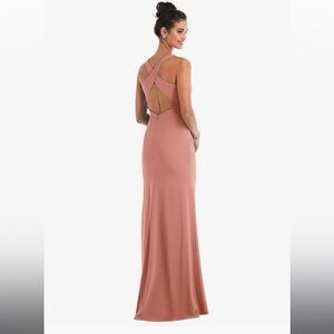 Dessy Collection-CRISS-CROSS CUTOUT BACK MAXI DRESS WITH FRONT SLIT