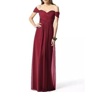 Dessy Collection Vivian Diamond 2970 Claret Off the Shoulder Draped Dress $284