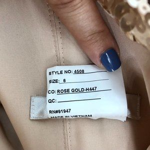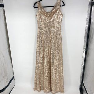 Dessy Group Rose Gold Sequined Beaded Formal Maxi Gown Cowl Neck 4508 Size 6 EUC