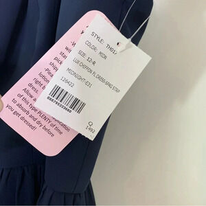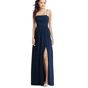 Dessy Thread Spaghetti Strap Chiffon Bridesmaid Dress Front Slit Gown Navy 12