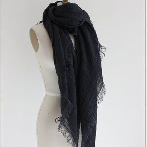 Destin Linen Scarf Wrap Black Gray Made in Italy $340 Retail Luxury Brand