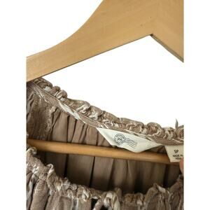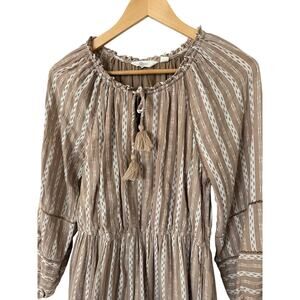 Destination 365 Long Sleeve Split Neck Dress 100% Cotton Tan White Small Petite