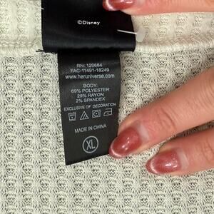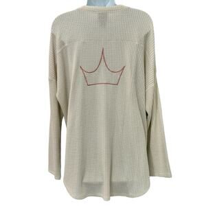 Destination Disney Speak Fluent Cream Waffle Knit Button Up Long Sleeve Top XL
