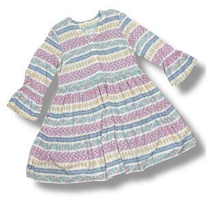 Destination 365 Floral V Neck Tiered Bell Sleeve Tunic Shift Dress White Multi