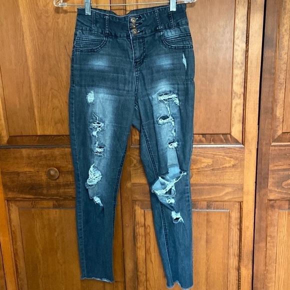 Destroyed Corset Waist Skinny Zipper/Button Fly Denim Jeans Darkwash Size 9 Jr