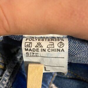 Destroyed Denim Jeans Pants Frayed Hem Elastic Waistband Women Large Drawstring