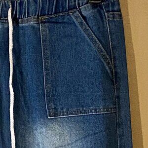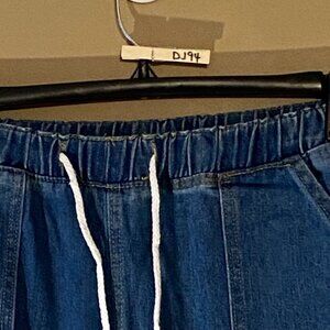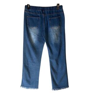 Distressed Denim Jeans Pants Frayed Hem Elastic Waistband Women Large Drawstring