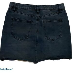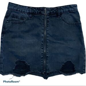 Super cute black denim jean skirt by Refuge, size small. Unique style with zipper down the front. Like new condition!