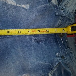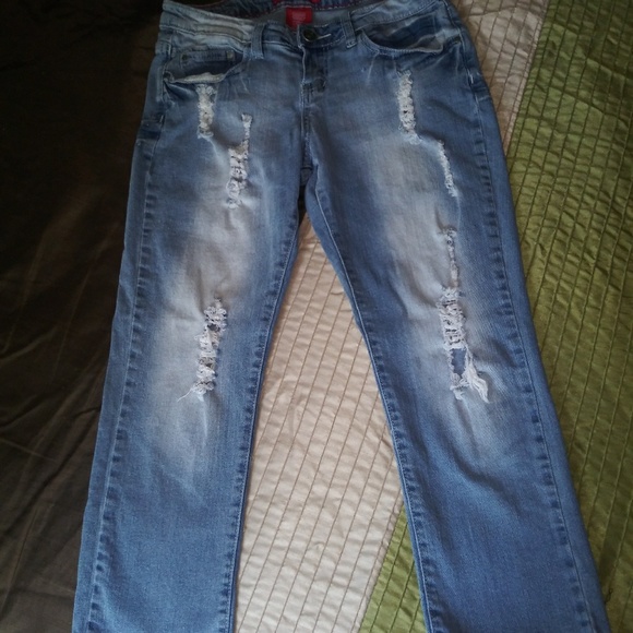 Super cute destroyed ripped very light wash Red Rivet jeans. Size 7 very soft and stretchy. Measurements laying flat unstretched: Waist 15 inches- Rise 8 inches- Hips 16 inches- Thigh 9 inches- Inseam 22 inches.