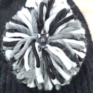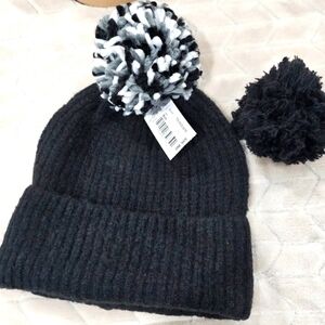 Detachable or Interchangeable Two Pom Beanie Cuffed Winter Knit Hat in Black NWT