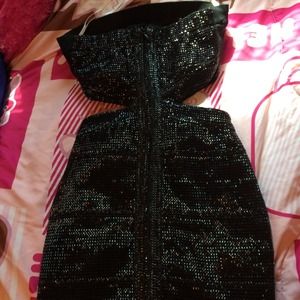 Black Detailed Party Dress . Sides cut out . Fit like a glove. Zipper in the back. Worn Once !!
