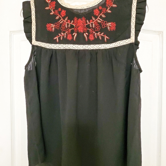 Cute blouse with cream colored lace trim. Size large.