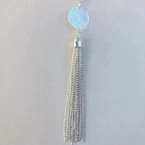 Detailed Circle and Tassel Silver Fashion Statement Long Necklace NWT